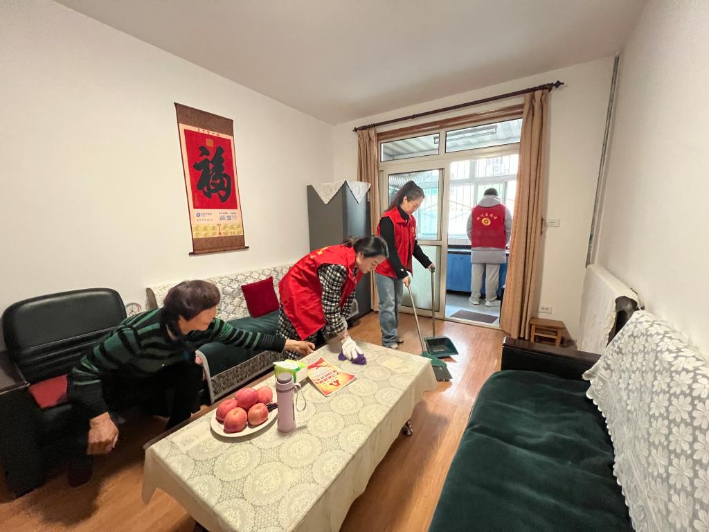 同時,另一隊志愿者們來到失獨老人李秀玲的家中,幫她打掃衛(wèi)生、晾曬被褥、陪她聊天、了解她的生活狀況、臨走時還叮囑她注意身體,有困難及時與志愿者聯(lián)系,使她感受到大家庭的溫暖。