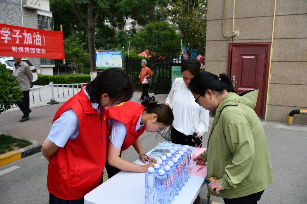 紅色愛(ài)心驛站,細(xì)節(jié)蘊(yùn)聚溫情。高考不僅是知識(shí)的比拼,更是心態(tài)的較量。銅煤繡園物業(yè)的志愿者在一、二號(hào)小區(qū)門(mén)口分別設(shè)置愛(ài)心助力服務(wù)驛站,免費(fèi)為考生及家長(zhǎng)提供應(yīng)急文具(2B鉛筆、橡皮、簽字筆)、瓶裝水、防暑降溫藥品(風(fēng)油精、藿香正氣水)、口罩、紙巾等,以備考生不時(shí)之需。