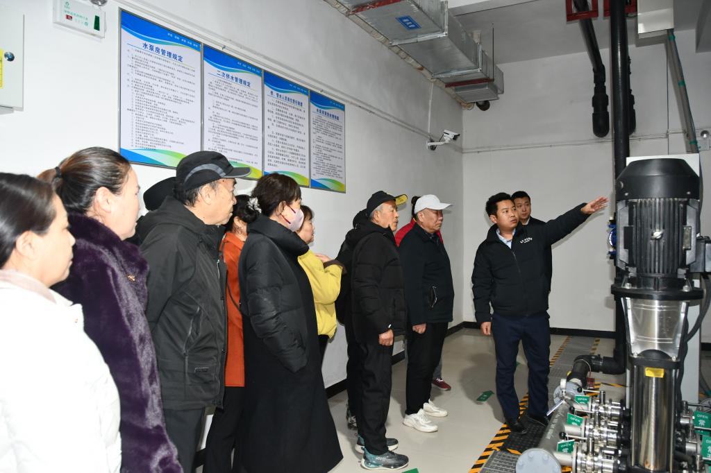 該中心工作人員帶領(lǐng)住戶代表前往地下室水泵房、熱力交換站等設(shè)備間,現(xiàn)場(chǎng)講解水泵的工作流程、日常巡檢要點(diǎn)和應(yīng)急處置流程,讓大家直觀了解園區(qū)供水系統(tǒng)的運(yùn)行細(xì)節(jié),并圍繞供暖設(shè)備運(yùn)行原理、供暖參數(shù)以及冬季供暖保障措施展開(kāi)細(xì)致講解,針對(duì)住戶關(guān)心的供暖溫度、能耗等問(wèn)題逐一回應(yīng)。