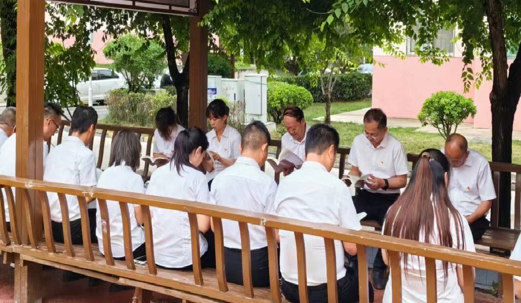 活動(dòng)中,王家河中心以黨的生日為契機(jī),將“讀書日”搬到轄區(qū)廉潔文化長(zhǎng)廊內(nèi),在綠蔭樹(shù)下、廉潔文化的熏陶中,朗朗讀書聲回蕩在長(zhǎng)廊內(nèi)。全體黨員通過(guò)誦讀黨史,重溫黨的光輝歷史,謳歌黨的豐功偉績(jī)的方式迎接黨的生日。黨員們從激情洋溢、豪情滿懷讀到感篆五中,任重道遠(yuǎn)。