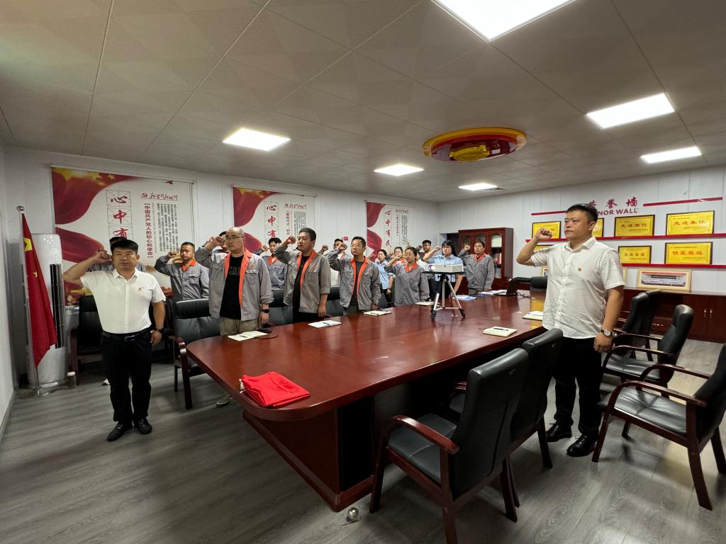 活動中,全體共產(chǎn)黨員面向鮮紅的黨旗,莊嚴肅立、高舉右手、握緊拳頭,在領(lǐng)誓人的帶領(lǐng)下重溫入黨誓詞。一句句誓詞鏗鏘有力、振奮人心,表達了對黨的無限忠誠和崇高敬意,激勵全體黨員不忘初心、牢記使命,愛崗敬業(yè)、勇創(chuàng)佳績。