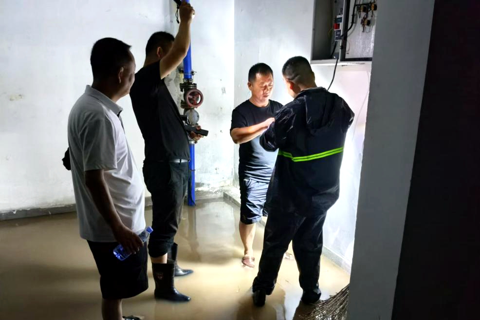 應(yīng)急隊(duì)伍迅速集結(jié),手持手電筒、鐵鍬、水泵等工具,冒雨穿梭在小區(qū)的每一個(gè)角落。他們首先重點(diǎn)檢查了低洼地帶、地下車庫入口及排水系統(tǒng),發(fā)現(xiàn)積水立即組織排水,確保水流順暢,同時(shí),利用水泵等設(shè)備加速排水進(jìn)程,減少積水對居民生活的影響。
