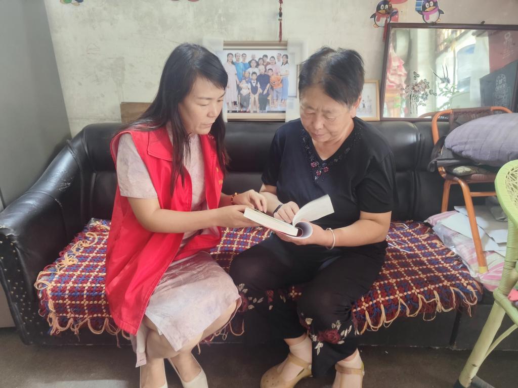 宣講中,該中心組織志愿者帶著宣講書籍進入居民區(qū),為行動不便的老黨員送去了學習書籍,并對過路群眾也進行了詳細講解,號召廣大黨員、群眾一起學習全會內容,領會全會精神,切實將黨的好政策、好聲音傳入千家萬戶。