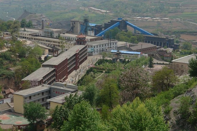 從“山上”俯瞰王石凹“山下”,可以看到“大樓”、選煤樓。那個(gè)黑色選煤樓前面的紅磚房子就是機(jī)電區(qū)翻砂組舊址上建設(shè)的,那里原先有平房,有院落,有我們的房子——木模倉庫,有我們父子開墾的“梯田”……現(xiàn)在痕跡全無 (攝影:韋夢龍)
