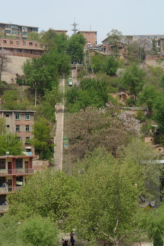 我不知道這樣的絞車別的地方有沒有:王石凹大約從20世紀(jì)50年代蘇聯(lián)人來建設(shè)的時(shí)候就開始有了——絞車道北邊有整齊的工房,那是蘇聯(lián)人建設(shè)的蘇式風(fēng)格的職工宿舍,一般是二層紅磚樓,當(dāng)時(shí),那些房子是礦上有身份地位的干部的住宅。整齊的工房下的山溝里是密集的窯洞、礦工擁擠的棚戶。東邊是井架上轉(zhuǎn)動(dòng)著的巨大天輪,連接著井下的鋼纜。有時(shí),礦上的運(yùn)煤火車噴著乳白色的濃煙轟鳴著駛進(jìn)隧道……這些景致每天都在我眼前晃過。小孩子喜歡玩纜車,扒車跳車,有危險(xiǎn),跳不好就從山上滾下來受傷,學(xué)生的父母們都要叮囑自己的孩子不要扒車跳車,但還是能見到很多學(xué)生呼嘯著成群接隊(duì)地跳車扒車作為游戲。熟能生巧,很多人都練就了跳飛車扒飛車的功夫,我還沒有見過哪個(gè)人跳絞車受傷。有點(diǎn)可怕的是運(yùn)煤的蒸汽火車。有些學(xué)生家住在火車道東邊——比我家住的翻砂組工場還要遠(yuǎn),每天上下學(xué)他們要過火車道,滿天星斗的凌晨,學(xué)生們就要成群結(jié)隊(duì)走過火車道。有時(shí),看到蒸汽機(jī)車好像瞪大眼睛發(fā)射出亮白的遠(yuǎn)射燈隆隆開來,龐大的機(jī)車像山一樣壓過來。當(dāng)時(shí),也聽說過有人經(jīng)過火車道時(shí)被軋斷了腿,流盡血送了命。蒸汽火車是運(yùn)煤炭的。我記得火車開到銅川要四五十分鐘。一出王石凹車站,火車就鉆進(jìn)一個(gè)長長的隧道,再開幾分鐘,到了喬子梁,又過一個(gè)長長的隧道?;疖囅耱暄训纳?,在黃土高原的溝壑里蠕動(dòng)。