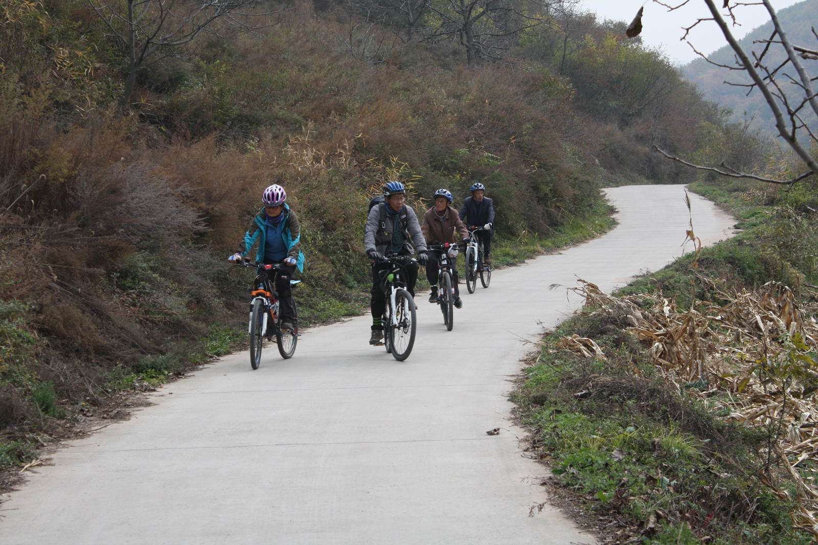 周六早晨八點(diǎn)許,八個(gè)驢友相約騎行云夢山。仲秋時(shí)節(jié),大概是受霧霾影響,天干霧騰,空氣通透不是太好,但總比窩在蝸居里好多了。秋高氣爽,適宜騎行,大家你追我趕,不甘示后,結(jié)果,有兩個(gè)驢友像射飛靶的子彈,順著山梁直插而去,我等隨后追趕不見蹤影,無奈拐道下山,當(dāng)了一回穿山甲、鉆山豹。一路泉水潺潺喜鵲喳喳,跨過小橋飛瀑流水人家,滿耳流行音樂(自帶音響)一路歡歌,舉目“漫山紅遍層林盡染”,美不勝收。