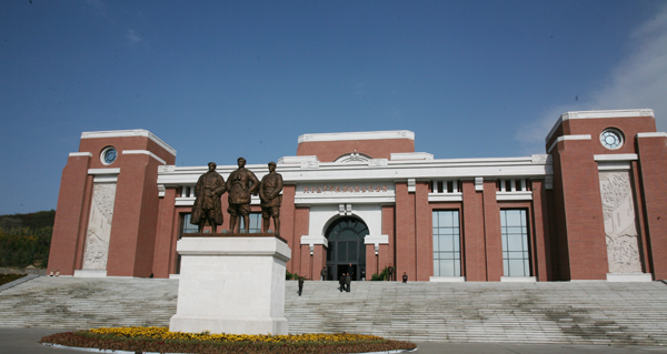 離照金村越來越近,一排排為村民們新建的紅色樓房盡收眼底,周圍環(huán)境優(yōu)美,空氣清新,仿佛置身度假山莊。汽車一轉(zhuǎn)彎,我們到達了照金紅色革命根據(jù)地展覽館。放眼望去,對面的山坡上高高的矗立著白色的人民英雄紀念碑,頂部正中鑲嵌著大大的一顆紅五星,寬闊的廣場上有許多身穿藍色的紅軍軍裝,頭戴紅五星軍帽的紅軍戰(zhàn)士正在敲鑼打鼓變換隊型,一問才知道原來是照金村民正在舉辦首屆運動會開幕式。