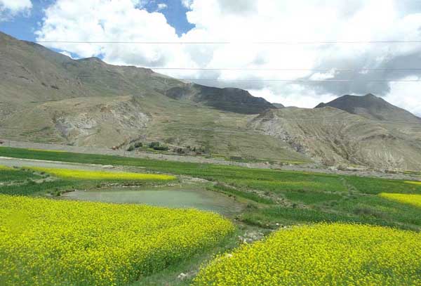細(xì)雨籠罩的那根拉山脈,海拔5190米。站在極其缺氧的高處一眼望見陽(yáng)光下的納木錯(cuò),雪山霧雨蒙蒙,湖邊陽(yáng)光一片,一天當(dāng)中能感受到四季的詭異。高原上的波浪,陽(yáng)光,云影,草地,湖泊,牛羊滿山坡,青稞郁郁,油菜花絢爛。那些千萬(wàn)游客,單反相機(jī),油彩畫筆,才思靈感,徒步,驢友,海內(nèi),海外,不遠(yuǎn)千里萬(wàn)里,來(lái)到這里,用眼欣賞,用腳丈量,用心體會(huì),充填精神的虧缺,充填心靈的空虛。