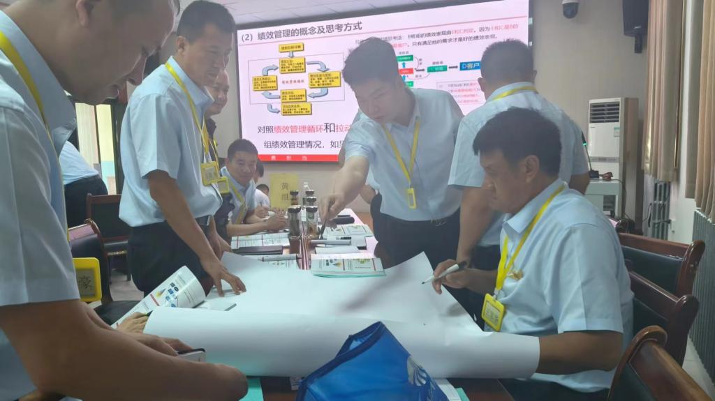 在培訓(xùn)中,優(yōu)秀的馮海波老師,為我們詳細(xì)講解了班組長的八項能力的提升,讓我系統(tǒng)了解了什么是標(biāo)桿班組、如何打造一支標(biāo)桿班組、如何做一名優(yōu)秀的金牌班組長等內(nèi)容,并采用師生互動的教學(xué)方式,使課堂氣氛活躍,讓大家快樂學(xué)習(xí)、高效提升。組織各小組開展研討交流,參學(xué)成員分享各自平時學(xué)習(xí)和工作中積累的經(jīng)驗教訓(xùn),制作管理模板,大家取長補短,進(jìn)一步提升管理效能,創(chuàng)新工作方式方法,運用新思路、新想法,充分展現(xiàn)企業(yè)良好形象和個人素質(zhì)能力。