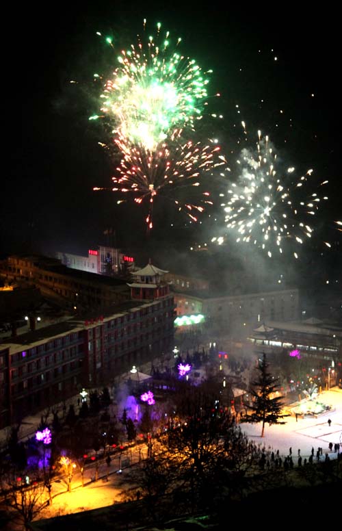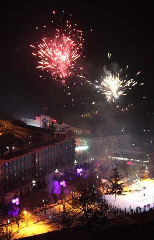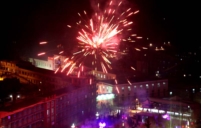 春節(jié)期間,王石凹煤礦在文化廣場(chǎng)燃放煙火,為礦區(qū)節(jié)日文化生活增添了一抹絢麗色彩。