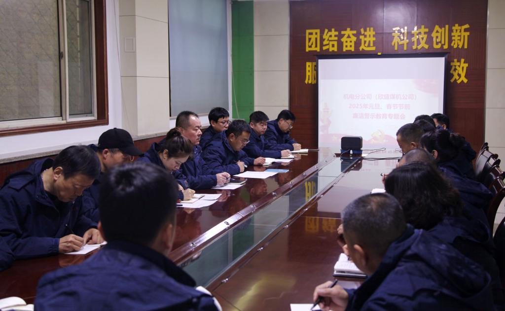 【機(jī)電分公司】12月25日,機(jī)電分公司(欣盛煤機(jī)公司)召開2025年元旦、春節(jié)節(jié)前廉潔警示教育專題會。會上,與會人員集中學(xué)習(xí)了習(xí)近平總書記在慶祝澳門回歸祖國二十五周年大會暨澳門特別行政區(qū)第六屆政府就職典禮上的重要講話精神、習(xí)近平總書記重要文章《深入推進(jìn)黨的自我革命》及中央紀(jì)委國家監(jiān)委公開通報(bào)八起違規(guī)吃喝典型問題等內(nèi)容,并對參會人員進(jìn)行了廉潔提醒。會議要求,一是提高政治站位,守好廉潔底線,鍥而不舍落實(shí)中央八項(xiàng)規(guī)定精神,馳而不息糾“四風(fēng)”樹新風(fēng),增強(qiáng)廉潔自律意識,自覺規(guī)范行為舉止。二是圍繞中心、服務(wù)大局,以嶄新的工作面貌、飽滿的精神狀態(tài),切實(shí)抓好各項(xiàng)工作任務(wù),為公司高質(zhì)量發(fā)展做出更大貢獻(xiàn)。三是以“節(jié)”點(diǎn)為“考”點(diǎn),嚴(yán)守紀(jì)律規(guī)矩,堅(jiān)決抵制違規(guī)收送禮品禮金、違規(guī)接受宴請等行為,做到公私分明、廉潔自律;四是以身作則、率先垂范,帶頭弘揚(yáng)新風(fēng)正氣、抵制歪風(fēng)邪氣,堅(jiān)決杜絕“節(jié)日腐敗”,將“真抓實(shí)干、馬上就辦”良好作風(fēng)落實(shí)在工作實(shí)踐中,以實(shí)干實(shí)績助力企業(yè)高質(zhì)量發(fā)展。(王皓)