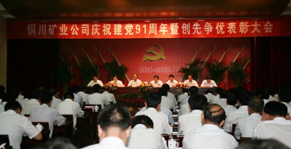 6月26日上午,銅川礦業(yè)公司慶祝建黨91周年暨創(chuàng)先爭優(yōu)表彰大會在煤業(yè)賓館餐廳樓二樓會議室隆重召開。公司在家的黨政領(lǐng)導(dǎo)宋志剛、黃河、徐捷、劉水利、師同民、薛鳴、封建利等出席大會,公司各副總、各基層單位黨政主要領(lǐng)導(dǎo)、黨委副書記、組織部長、公司機(jī)關(guān)各部門負(fù)責(zé)人、受表彰的先進(jìn)集體和先進(jìn)個(gè)人共160余人參加了會議。