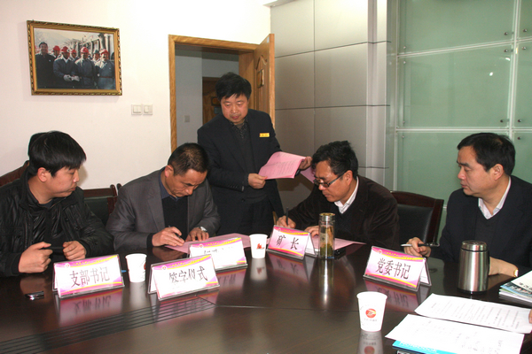 為了進(jìn)一步加強(qiáng)黨風(fēng)廉政建設(shè),構(gòu)建平安穩(wěn)定和諧礦區(qū),3月12日,下石節(jié)煤機(jī)關(guān)二樓會(huì)議室里,該礦礦礦長李文輝,黨委書記李國璧,紀(jì)委書記李俊輝分別與基層各單位行政主管,支部書記簽訂了《黨風(fēng)廉政建設(shè)目標(biāo)責(zé)任書》和《平安穩(wěn)定和諧礦區(qū)建設(shè)目標(biāo)責(zé)任書》。責(zé)任書中明確了工作目標(biāo)、責(zé)任、以及考核獎(jiǎng)憑辦法,促使各級干部嚴(yán)格按照目標(biāo)責(zé)任書要求,恪守職責(zé),嚴(yán)以自律,為促進(jìn)礦區(qū)穩(wěn)定和諧健康發(fā)展,各項(xiàng)工作有序進(jìn)行夯實(shí)了基礎(chǔ)。