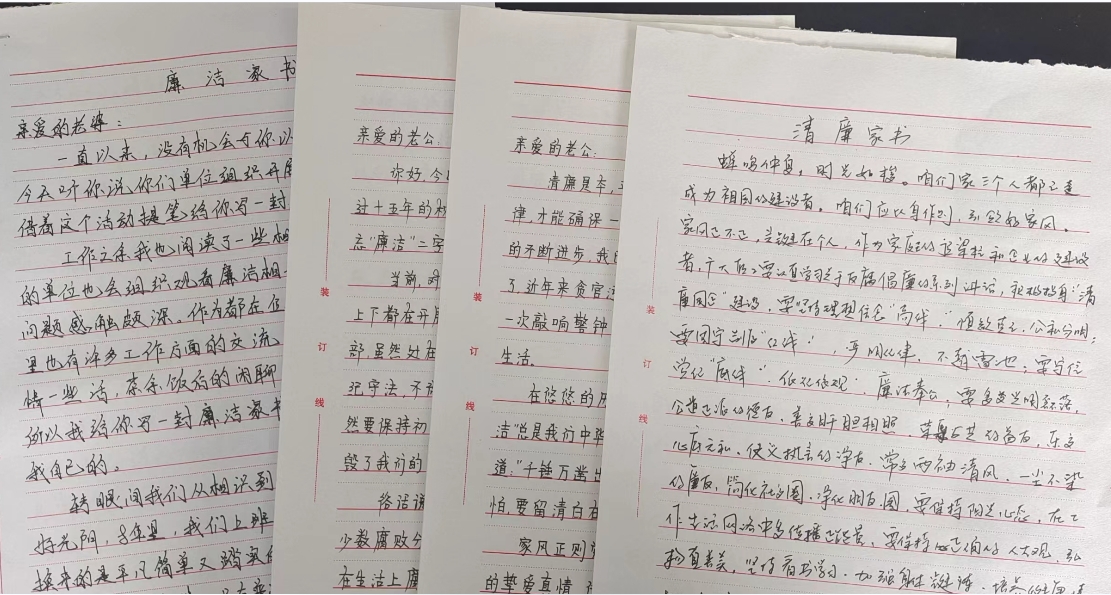 家風(fēng)正則民風(fēng)正,民風(fēng)正則政風(fēng)清。該中心以書(shū)信的形式,推進(jìn)廉潔教育進(jìn)家庭,用親情筑牢廉潔防線(xiàn),架起單位與家庭之間的“廉心橋”,引導(dǎo)干部自覺(jué)學(xué)習(xí)廉潔文化、建設(shè)廉潔家庭、弘揚(yáng)廉潔家風(fēng),共同構(gòu)筑家庭反腐倡廉的防火墻。