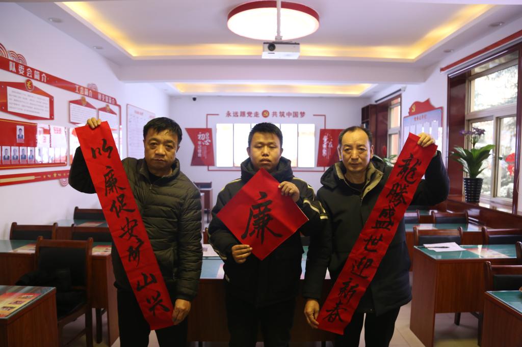 寫(xiě)春聯(lián)既給我們帶來(lái)了濃濃年味,又讓我們感受了清風(fēng)廉味,我覺(jué)得很有創(chuàng)新也很有教育意義,就把這幅廉潔對(duì)聯(lián)貼在我們單位的大門(mén)上,提醒樓上過(guò)往的黨員干部強(qiáng)化廉潔自律意識(shí),保持勤儉節(jié)約、清正廉明的優(yōu)良作風(fēng)!”綜采隊(duì)黨支部書(shū)記接過(guò)筆墨未干的春聯(lián)開(kāi)心地說(shuō)道。
