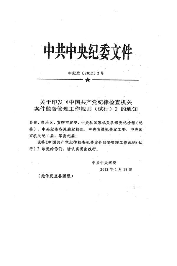 中共陜西陜煤銅川礦業(yè)有限公司紀律檢查委員會關(guān)于轉(zhuǎn)發(fā)《中國共產(chǎn)黨紀律檢查機關(guān)案件監(jiān)督管理工作規(guī)則(試行)》的通知