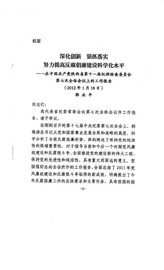 中共陜西陜煤銅川礦業(yè)有限公司紀律檢查委員會轉發(fā)省郭永平同志在陜西省十一屆紀律檢查委員會第七次全會上的工作報告