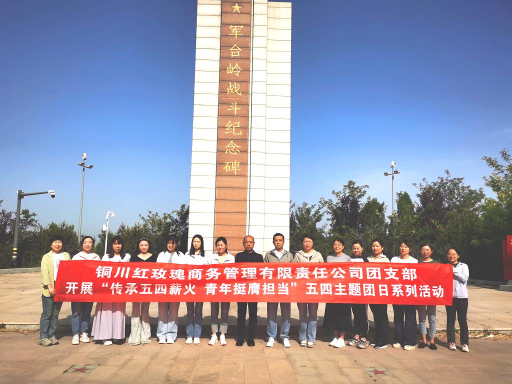 五四青年節(jié)之際,紅玫瑰商務(wù)管理公司團(tuán)支部組織團(tuán)員青年走進(jìn)銅川市軍臺(tái)嶺戰(zhàn)斗遺址,開展“傳承五四薪火 青年挺膺擔(dān)當(dāng)”主題團(tuán)日活動(dòng)。