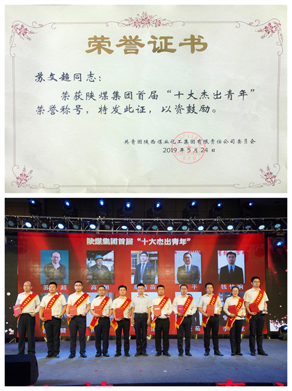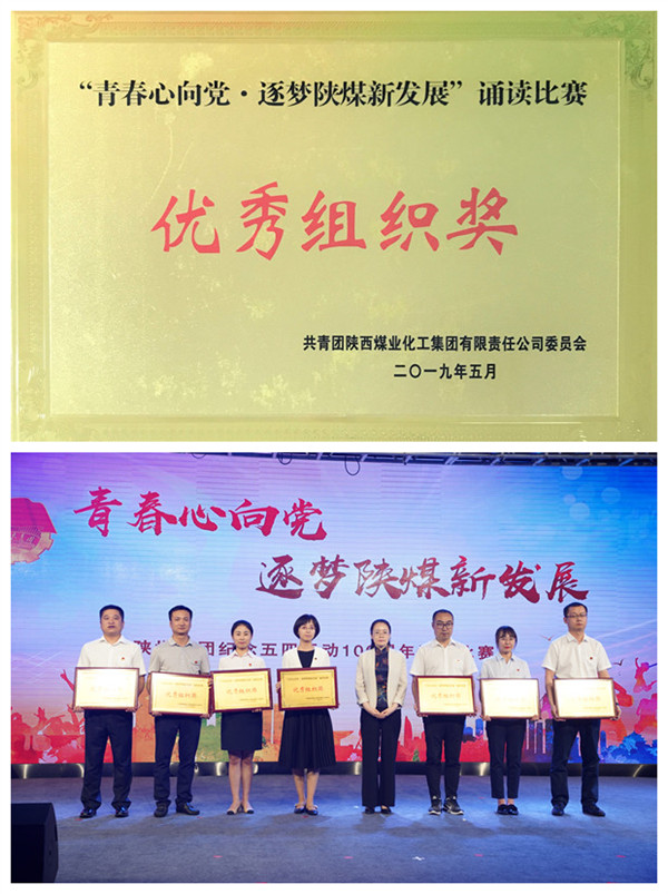 5月24日下午,陜煤集團(tuán)舉辦了“青春心向黨?逐夢陜煤新發(fā)展”主題誦讀比賽暨優(yōu)秀青年表彰大會。會上,公司直屬工委青工蘇文超被授予陜煤集團(tuán)首屆“十大杰出青年”,下石節(jié)礦青工劉彪獲第七屆“十佳青年崗位技術(shù)明星”,陳家山礦孫東旭,公司團(tuán)委周軍分別榮獲2017-2018年度“優(yōu)秀共青團(tuán)員”“優(yōu)秀共青團(tuán)干部”,公司團(tuán)委被評為“優(yōu)秀組織獎”,公司選送的作品《奮斗新時代,文化新陜煤》在比賽中取得了好成績。