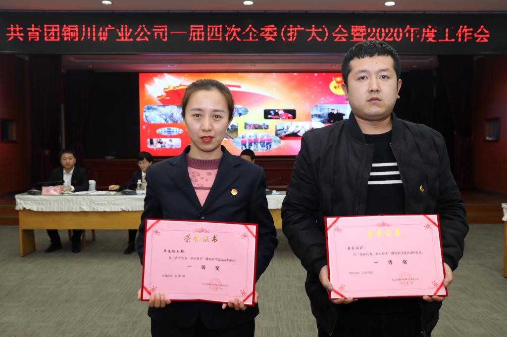會上對“青春有為,初心最美”微電影評選活動優(yōu)秀作品進行了表彰。公司團委馬陽宣讀了表彰決定,柴家溝礦《奮斗的青春》、華遠項目部《路燈》獲得一等獎,欣榮公司《責(zé)任》、下石節(jié)礦《幸福清單》、供應(yīng)公司《“爆”徒弟與他的“倔”師傅》獲得二等獎,玉華礦《你我同行》、鐵運公司《事故始于麻痹》、機電公司《媽媽的嘮叨》、救護大隊《砥礪為救護事業(yè)前行》獲得三等獎。在熱烈掌聲中,公司領(lǐng)導(dǎo)為獲獎單位頒發(fā)了榮譽證書。