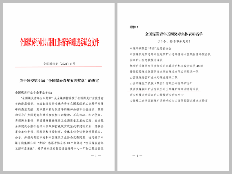 “全國煤炭青年五四獎?wù)隆笔侨珖禾啃袠I(yè)共青團(tuán)工作指導(dǎo)和推進(jìn)委員會授予全國煤炭行業(yè)優(yōu)秀青年的最高榮譽(yù),旨在樹立政治進(jìn)步、品德高尚、貢獻(xiàn)突出的優(yōu)秀青年典型,反映當(dāng)代青年的精神品格和價(jià)值追求。全國煤炭系統(tǒng)共有10個集體獲獎,公司柴家溝井綜采隊(duì)是陜煤集團(tuán)唯一受到表彰的先進(jìn)集體。