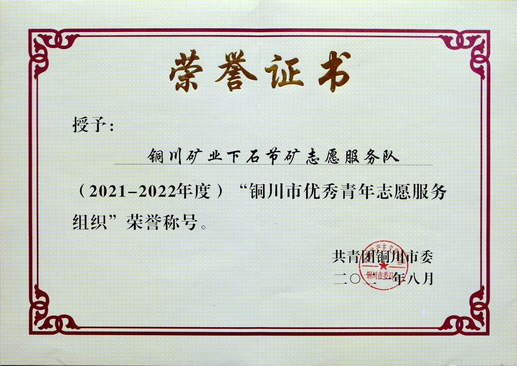 近日,下石節(jié)礦志愿服務(wù)隊(duì)獲得 “2021-2022年度銅川市優(yōu)秀青年志愿服務(wù)組織”榮譽(yù)稱號(hào),為該礦“小紅帽”青年志愿服務(wù)品牌再添一筆亮麗的注腳。