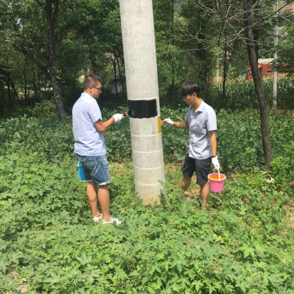 活動中,該分公司團員青年兩兩一組,按照操作要求,進行分工。首先對桿基刷漆部位高度進行測量,利用紙膠帶間隔高度,其次進行黑、黃兩種顏色的刷漆,為過往車輛起到了安全警示作用。本次活動,充分發(fā)揮了年輕人不怕苦、不怕累、不怕臟的精神面貌。