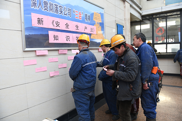 “通過(guò)開(kāi)展安全知識(shí)有獎(jiǎng)答題活動(dòng),讓干部職工從入井的第一步開(kāi)始,把安全裝進(jìn)心里,把企業(yè)的發(fā)展和家庭的幸??冈诩缟?,高高興興上班,平平安安回家?!痹摰V機(jī)電車間團(tuán)支部書記說(shuō)。