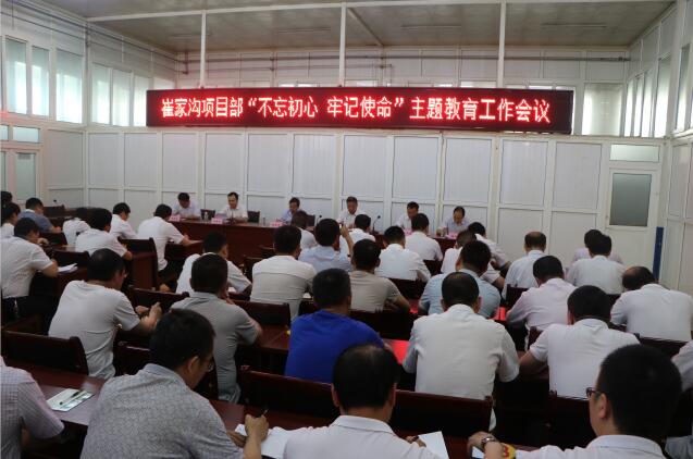 6月26日上午9時,崔家溝項目部在培訓室召開“不忘初心 牢記使命”主題教育會議,該項目部領導班子、各副總、各單位負責人、黨支部書記、支部專職副書記及黨員代表共70余人參加。