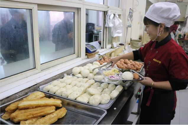 袁曉風(fēng)是職工食堂的一名職工,她主要負(fù)責(zé)日常打飯工作,清晨6點(diǎn)30分,當(dāng)上早班的職工陸陸續(xù)續(xù)走進(jìn)食堂,她將剛蒸好的饅頭、包子,煮好的雞蛋以及精心準(zhǔn)備好的小菜與一碗熱騰騰的稀飯通過窗口遞到職工手里。袁曉風(fēng)說:“餐飲最能決定職工過節(jié)的心情,一碗熱乎乎的飯菜,一句節(jié)日的溫馨問候,讓職工在井下作業(yè)期間,更能夠感受到節(jié)日的氛圍和項(xiàng)目部大家庭帶來的溫暖。