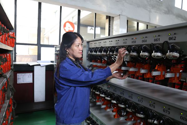 “礦燈是礦工兄弟的‘眼睛’?!鼻鍧?、維護、充電、檢修,每天重復(fù)的動作,不斷地穿梭在十幾排燈架之間,不僅沒讓充電房的女工感到厭煩,反而多了幾分神圣。她們在工作期間,嚴格確保燈線沒有開裂、燈圈沒有松動、照明亮度可靠、充電接觸及充電電壓到位,避免給職工的井下作業(yè)帶來耽擱。