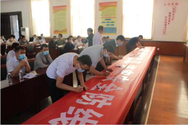隨后,與會干部職工在“消除事故隱患 筑牢安全防線”的主題橫幅上進(jìn)行安全承諾簽名,宣示樹牢安全理念,明確安全目標(biāo),奮力推進(jìn)安全生產(chǎn)的信心和決心。(霍毅)