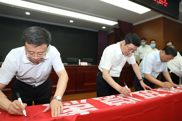 隨后,公司領(lǐng)導(dǎo)及參會(huì)人員在“消除事故隱患,筑牢安全防線”主題宣傳條幅上鄭重簽名,莊嚴(yán)宣示樹牢安全發(fā)展理念,壓緊壓實(shí)安全責(zé)任,促進(jìn)企業(yè)安全生產(chǎn)水平提升,為公司高質(zhì)量發(fā)展?fàn)I造安全穩(wěn)定的發(fā)展環(huán)境的信心和決心。