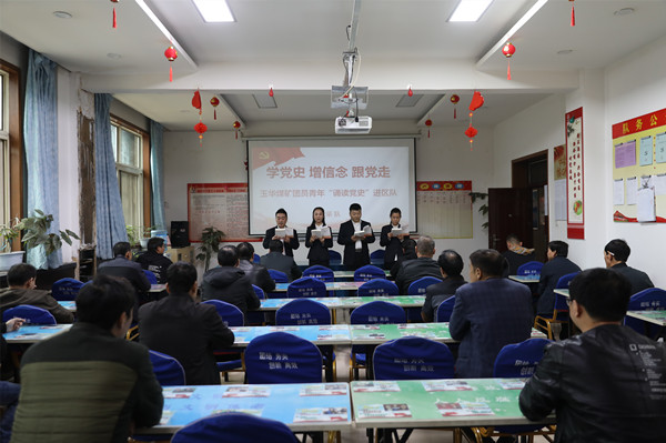 該礦緊密結(jié)合青年職工的思想實際,采取職工群眾喜聞樂見的方式,組織團(tuán)員青年走進(jìn)采掘一線單位班前會,開展“學(xué)黨史、強(qiáng)信念、跟黨走”團(tuán)員青年誦讀黨史進(jìn)基層活動。來自機(jī)關(guān)、生產(chǎn)輔助單位的團(tuán)員為干部職工接力誦讀了《中國共產(chǎn)黨簡史》第三章“全民族抗日戰(zhàn)爭的中流砥柱”的章節(jié)內(nèi)容。在聲情并茂的瑯瑯讀書聲中,帶著大家深刻感悟中國共產(chǎn)黨在抗日戰(zhàn)爭時期不畏艱難險阻,英勇奮戰(zhàn)的斗爭精神,講好紅色故事,傳承紅色基因。交流黨史學(xué)習(xí)教育以來的思想認(rèn)識和學(xué)習(xí)收獲,深刻理解不同歷史時期老一輩無產(chǎn)階級革命家勇敢拼搏、艱苦奮斗的精神,激勵堅毅前行。
