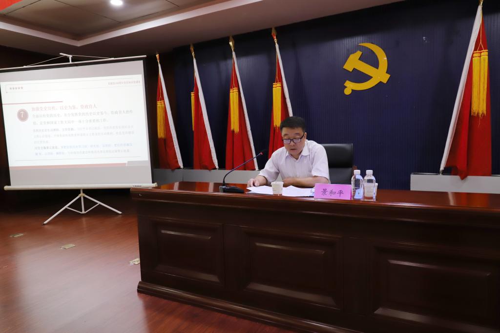 6月10日上午,公司“黨委書(shū)記講黨史”宣講團(tuán)成員、王石凹煤礦黨委副書(shū)記、紀(jì)委書(shū)記景和平走進(jìn)鐵運(yùn)分公司作黨史學(xué)習(xí)教育專題宣講。該分公司共計(jì)50余人聆聽(tīng)報(bào)告。
