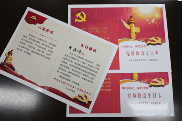 在深入推進(jìn)黨支部標(biāo)準(zhǔn)化創(chuàng)建中,該礦黨委積極探索創(chuàng)新黨員管理和學(xué)習(xí)教育,把過好政治生日作為強(qiáng)化黨員政治意識(shí)和黨性觀念的重要抓手,通過建立黨員政治生日臺(tái)賬,準(zhǔn)確掌握黨員信息,準(zhǔn)時(shí)為黨員發(fā)放“政治生日”賀卡的舉措,進(jìn)一步提高黨組織的凝聚力和戰(zhàn)斗力,充分發(fā)揮黨員先鋒模范作用,為礦井高質(zhì)量發(fā)展繼續(xù)貢獻(xiàn)力量。