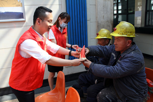 節(jié)目不斷,驚喜連連。青年志愿者們還為一線職工們發(fā)放了安全宣傳單,并詳細了解職工工作和生活情況,叮囑他們注意身體,做好防暑降溫工作,下井注意安全。
