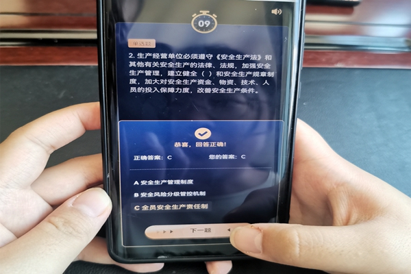 為全面營(yíng)造學(xué)法、守法、用法的濃厚氛圍,該公司在做好線下安全宣傳教育的同時(shí),積極探索安全教育培訓(xùn)新模式,開(kāi)展“掌上”安全教育,動(dòng)員全體員工以鏈工寶APP為平臺(tái),廣泛參與“新安法知多少”網(wǎng)絡(luò)答題競(jìng)賽活動(dòng),通過(guò)每日通報(bào)積分情況,督促員工每日登錄學(xué)習(xí)答題,掀起了比知識(shí)、賽積分、爭(zhēng)做“安全達(dá)人”的學(xué)習(xí)新熱潮。