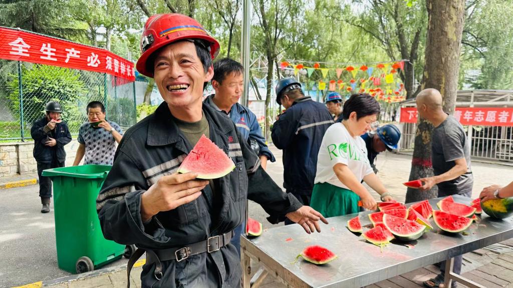 “師傅,辛苦了,吃塊西瓜解解暑?!痹谙率?jié)礦井口“送清涼 送關(guān)愛”活動現(xiàn)場,該礦工會的同志為礦工送上了清涼可口的西瓜和防暑降溫品。職工們紛紛表示,企業(yè)關(guān)愛職工,我們更要繃緊安全弦,干好標準活,全力促生產(chǎn)。