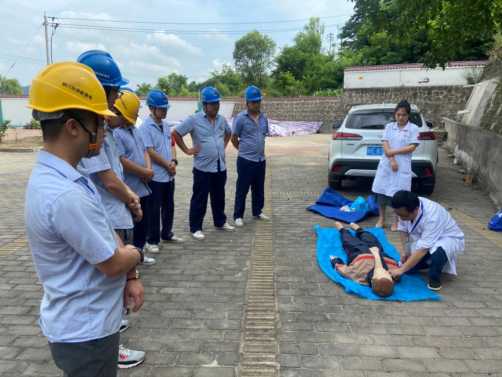 “觸電急救要通暢氣道,口對口人工呼吸,每做30次胸外按壓需進行2次通氣……”在欣榮公司玉華35kV變電站觸電急救培訓現(xiàn)場,醫(yī)護人員和培訓師正在為員工進行觸電急救、心肺復蘇、包扎搬運等急救方法演示,員工們通過“現(xiàn)場觀摩”了解應急處置知識,掌握安全自救技能。