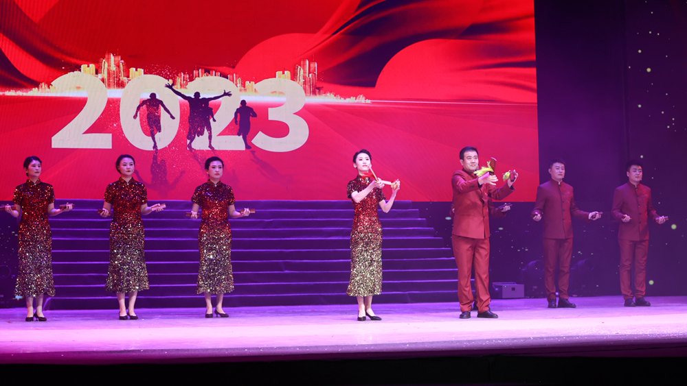 演出在開場舞《勞動最光榮》中拉開序幕。舞蹈《青春旋律》將銅煤礦工扎根礦山、奮斗創(chuàng)業(yè)的激情與活力盡情展現(xiàn),雜技《豐收的田野》生動展現(xiàn)了勞動的場景、收獲的喜悅,舞蹈《綠韻》將銅煤人建設綠色礦山,創(chuàng)建美麗家園的奮斗與實踐呈現(xiàn)眼前。情景歌舞《回家》以深情的話語和詩歌的語言將兒子對母親的思念、母親對兒子的期盼演繹的催人淚下、感人至深。歌伴舞《彷徨》以對礦山工作、生活和心路歷程的記錄,對礦區(qū)變遷、企業(yè)發(fā)展的回望,由彷徨到不再彷徨,傳達出了熱愛礦山、奮斗煤海的心聲。群口快板《新征程》,通過回望2022年銅煤發(fā)展的閃光足跡,有力激發(fā)了干部職工奮戰(zhàn)2023,啟航新征程的奮斗豪情。幽默的小品、精彩的魔術(shù)、沙畫表演和戲曲聯(lián)唱等節(jié)目豐富多彩、精彩紛呈,引起現(xiàn)場觀眾的熱烈掌聲。演出在歌伴舞《人民就是江山》中圓滿落下帷幕。