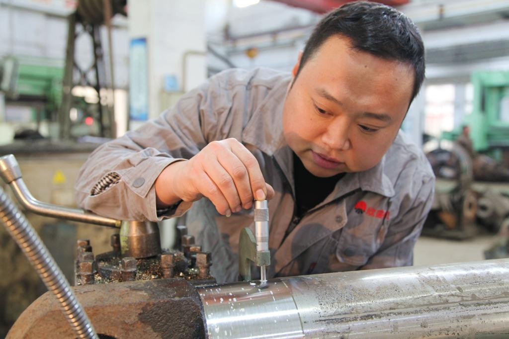 多年來,他始終堅(jiān)持立足崗位,刻苦鉆研業(yè)務(wù)技術(shù),經(jīng)過反復(fù)實(shí)踐提出了將軸承進(jìn)行加熱后再安裝的方法,改變了過去傳統(tǒng)安裝軸承費(fèi)人費(fèi)力又耗時(shí)問題;以及利用現(xiàn)有電動(dòng)工具成功改造組焊接頭,使電動(dòng)工具代替手動(dòng)扭矩扳手安裝滾筒漲套,減輕勞動(dòng)強(qiáng)度,提高工作效率,再到根據(jù)生產(chǎn)需要維修改造深孔鏜床等多項(xiàng)技術(shù)革新、工藝改進(jìn)工作,為企業(yè)生產(chǎn)經(jīng)營做出了積極貢獻(xiàn),在平凡崗位上創(chuàng)造著非凡的人生價(jià)值。