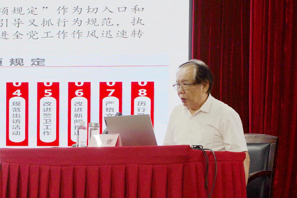 盧飛鷹以《深入貫徹八項(xiàng)規(guī)定精神 推進(jìn)作風(fēng)建設(shè)常態(tài)化》為主題,從“八項(xiàng)規(guī)定精神與反對(duì)‘四風(fēng)’、八項(xiàng)規(guī)定精神與黨的紀(jì)律、多舉措貫徹落實(shí)八項(xiàng)規(guī)定精神,以及一體推進(jìn)學(xué)查改”四個(gè)方面作了專(zhuān)題輔導(dǎo),通過(guò)學(xué)習(xí),參培人員對(duì)加強(qiáng)黨的作風(fēng)建設(shè)的重要性有了更深刻的認(rèn)識(shí),對(duì)中央八項(xiàng)規(guī)定精神的精髓要義有了更深入的把握,為開(kāi)展好學(xué)習(xí)教育打牢了思想根基。