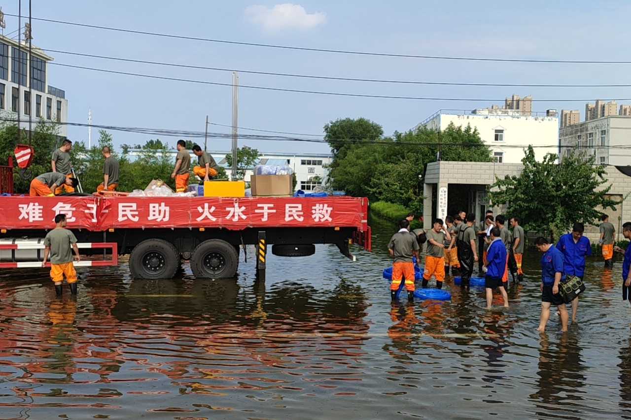 2021年7月,河南遭遇歷史罕見的特大暴雨,鄭州、新鄉(xiāng)等地城市內(nèi)澇嚴(yán)重,群眾被困、交通中斷。接到上級(jí)馳援指令時(shí),大隊(duì)正在開展訓(xùn)練,隊(duì)員們來(lái)不及收拾行李,僅用1小時(shí)就完成人員集結(jié)、裝備裝車,連夜冒雨火速馳援河南救災(zāi)現(xiàn)場(chǎng)。抵達(dá)新鄉(xiāng)后,隊(duì)員們立即投入戰(zhàn)斗。在衛(wèi)輝市某小區(qū),積水最深處達(dá)2米,隊(duì)員們背著老人、抱著孩子,往返數(shù)十次轉(zhuǎn)移被困群眾;在某工業(yè)園區(qū),為盡快排出廠房積水,隊(duì)員們連續(xù)48小時(shí)奮戰(zhàn)救災(zāi)區(qū)域,餓了就啃方便面,困了就打個(gè)盹。連續(xù)13天里,共完成3個(gè)區(qū)域、5個(gè)排澇點(diǎn)的救災(zāi)任務(wù),排水總量約16萬(wàn)立方米,轉(zhuǎn)移群眾36人,解救被困車輛8臺(tái),被當(dāng)?shù)厝罕娪H切稱為“來(lái)自陜西的救命恩人”。