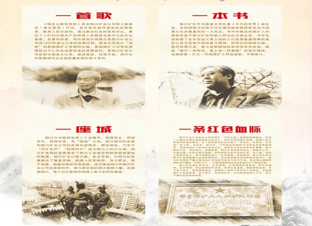 堅(jiān)持把傳承企業(yè)歷史文化、賡續(xù)紅色精神血脈、打造特色文化品牌,作為激發(fā)創(chuàng)業(yè)奮進(jìn)力量的重點(diǎn)工作來抓。圍繞講好10多位黨和國家領(lǐng)導(dǎo)人接見銅煤英模人物或到銅川礦務(wù)局考察的故事,講好銅川礦區(qū)的老紅軍、老八路、老戰(zhàn)士投身銅川礦區(qū)的奮斗故事,講好銅川礦業(yè)作為經(jīng)典歌曲《唱支山歌給黨聽》歌詞誕生地的故事,著名作家路遙深入銅川礦務(wù)局鴨口煤礦、陳家山礦體驗(yàn)生活和創(chuàng)作文學(xué)巨著《平凡的世界》,使銅川礦務(wù)局成為茅盾文學(xué)獎(jiǎng)獲獎(jiǎng)作品《平凡的世界》的生活體驗(yàn)地、創(chuàng)作孕育地的故事,并圍繞打造以“一首歌、一本書、一座城、一條紅色血脈”為內(nèi)容的銅煤“四個(gè)一”文化品牌,拍攝制作《銅煤榮耀》電視紀(jì)錄片,對(duì)銅川礦業(yè)的歷史文化進(jìn)行了系統(tǒng)的挖掘和整理。與此同時(shí),圍繞講好著名作家、藝術(shù)家田漢、馮至、尚小云等文化名人,到銅川礦區(qū)考察、訪問和為銅川礦工進(jìn)行文藝演出的故事,講好銅煤英模人物扎根礦山、奮斗創(chuàng)業(yè)的故事,講好新時(shí)代的銅煤人建設(shè)智慧礦區(qū)和魅力礦山的故事,以及深入開展文明創(chuàng)建,大力弘揚(yáng)勞模精神,深入踐行工匠精神,使公司黨建和企業(yè)文化建設(shè)等工作取得了豐碩成果,相繼榮獲“全國模范職工之家、改革開放40周年企業(yè)文化建設(shè)標(biāo)桿單位、全國煤礦文化藝術(shù)工作先進(jìn)單位、全煤系統(tǒng)思想政治工作先進(jìn)單位、全煤系統(tǒng)全民健身先進(jìn)單位、陜西省企業(yè)文化建設(shè)優(yōu)秀成果、陜西省廉政文化建設(shè)示范點(diǎn)”等榮譽(yù)。