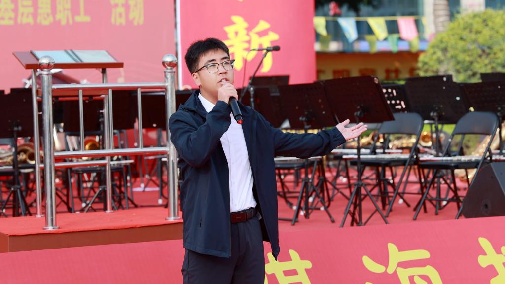 演出分上半場、下半場進(jìn)行。上半場演出在交響管樂《紅旗頌》的激昂旋律中拉開序幕,氣勢磅礴的樂章、震撼人心的旋律,將家國情懷、奮進(jìn)力量傳遞到現(xiàn)場的每一名職工的心中。
